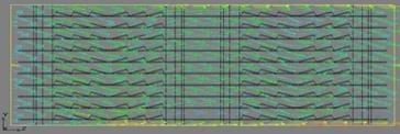 The simulated results of wasp-waisted tube type radiator and flat tube type radiator are explained with an example, in which the inlet air temperature is 293K, the wind speed is 4m/s, the inlet water temperature is 358K, and the water flow is 100L/min. The specific results are listed below. The outlet water temperature and water side pressure drop of the flat tube are 355.79K and 2.399Pa, respectively (Figure 4 and Figure 5), while those of the wasp-waisted tube are 355.56K and 2.589Pa, respectively (Figure 6 and Figure 7); the outlet wind temperature and wind side pressure drop the flat tube are 357.16K and 359Pa, respectively (Figure 8 and Figure 9), while those of the wasp-waisted tube are 357.55K and 399Pa, respectively (Figure 10 and Figure 11). The wasp-waisted tube has lower outlet water temperature and higher outlet wind temperature than the flat tube, indicating better heat transfer performance. It is mainly because the wasp-waisted shape disrupts the flow of air, causing obvious eddy currents in the near-wall region; the numerous eddy currents takes away more heat and enhances the local heat transfer in the region (Figure 12). However, the outlet pressure drops of the wasp-waisted tube type radiator are greater than those of flat tube type radiator at both the water side and wind side. The difference is explained as follows: since the outside wall of the flat tube is a plane surface, the air would flow at a uniform velocity; however, local turbulence would occur after the air flows around the radiating tube. On the contrary, the wasp-waisted tube has concave walls and longer outer circumference than the flat tube. The unique shape broadens the area of turbulence. In short, the air flow across the air channel of the wasp-waisted tube is much more chaotic than that of flat tube.