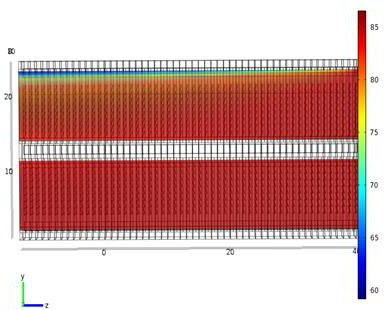 Figure 4. Water temperature distribution of flat tube