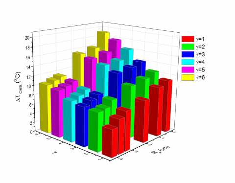 Figure 7. Variation in ∆TONB with γ and Ra