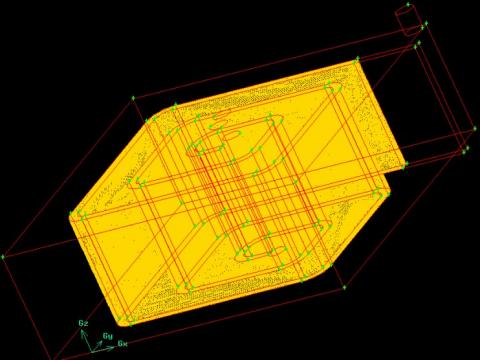 Each one of the four suggested patterns has a cross-section of 25x2 cm, and a passage length of 330 cm. the distance between any two neighboring paths is 8 cm. The four patterns were designed and meshed using the code GAMBIT with the TGrid meshing scheme and Tet/Hybrid elements type. After several preliminary tests, the stable grid resolution required 1850000, 1580000, and 1200000 elements for the rectangular, the zigzag, and the spiral patterns, respectively. The numerical simulations were performed using ANSYS 14.5 with a pressure-based solver with a standard k-epsilon model and wall function. The turbulent intensity and the turbulent viscosity ratio were limited to 5% and 10, respectively. About 1500 iterations were enough to achieve a convergence with a minimum residual of about 0.0001. Figure 1 illustrates the meshed domains of the rectangular passage type. Figure 2 illustrates the meshed domains of the zigzag passage type. Figure 3 illustrates the meshed domains of the spiral passage type. Figure 4 illustrates the meshed domains of the narrow-spiral passage type.