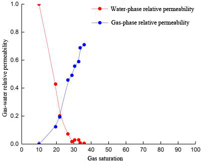 Figure 4. Unsteady-state gas-water relative permeability curves under a constant pressure of 0.1Mpa