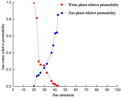 Figure 5. Unsteady-state gas-water relative permeability curves under a constant pressure of 0.2MPa