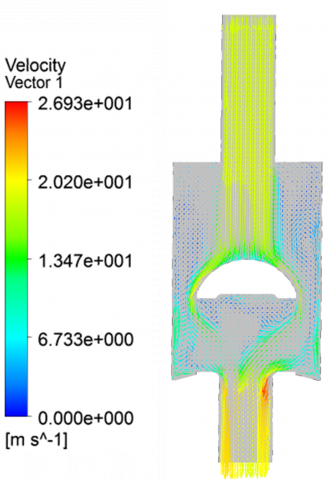 Figure 5. Velocity contour and vortex zone in throttle valve