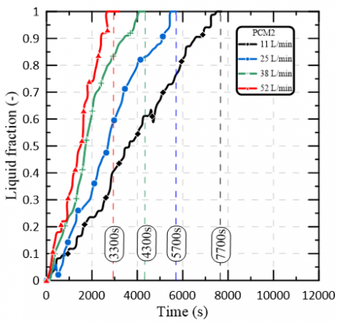 Figure 3. PCM temperature vs Melting time