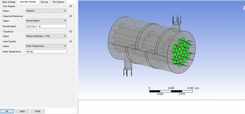 The subsequent step is domain definition for both fluids i.e., coolant and flue gases. The domain type defined for flue gases is fluid type. The fluid material type is NO and the reference pressure is set to 1atm. The domain definition of the shell is shown in Figure 5.