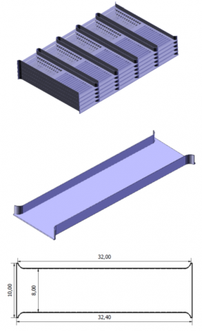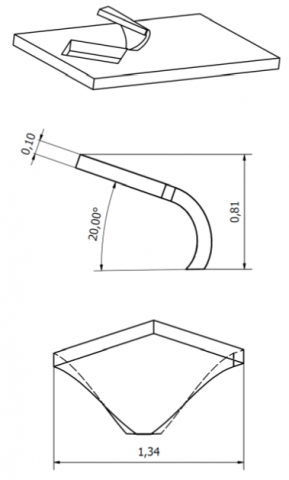 Figure 2. A 3D representation of the longitudinal vortex generator (LVG) accompanied by its main dimensions in [mm]