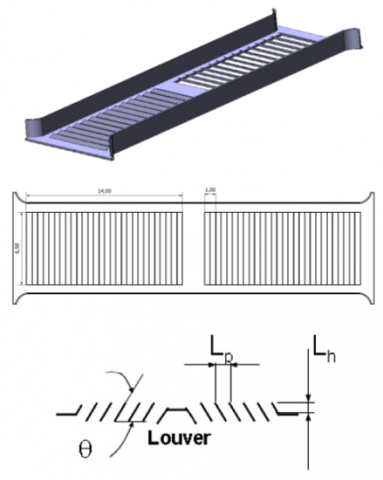 For this analysis, the compact heat exchanger's geometry, featuring louvered fins and flat tubes typically used in the automobile industry for radiators, was sourced from Cuevas et al. [3]. A single channel of the radiator was simulated.