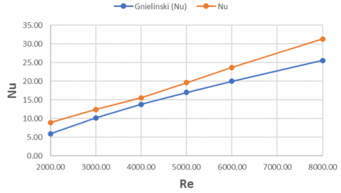 $N u=\frac{\left(\frac{f}{8}\right)(R e-1000) \operatorname{Pr}}{1+12.7 \sqrt{\frac{f}{8}}\left(\operatorname{Pr}^{\frac{2}{3}}-1\right)}$ (14)