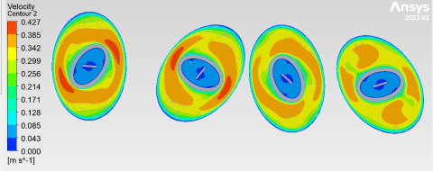 Numerical solutions are found for the governing equations of the present model. The Navier-Stokes equations in three dimensions can be predicted using CFD. code Fluent23. Using computational fluid dynamics (CFD) modelling, the fluid flow properties of a twisted elliptical double-tube heat exchanger can be determined at many points. The convergence criteria for the equations of motion and energy are 1*10-6.