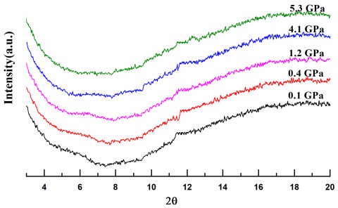 Figure 4. Synchrotron radiation X-ray diffraction spectrum of [Emim][CF3AcO] under high pressure