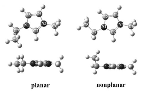 Figure 6. Schematic diagram of planar and non-planar conformational structures of the cation [Emim]+