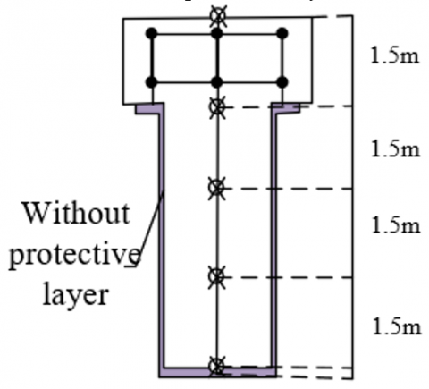 Under uniform heating conditions, all parts of a reinforced concrete bridge will undergo a synchronous temperature rise, leading to overall thermal expansion of the material. Due to the different coefficients of thermal expansion of steel and concrete, they will experience varying degrees of expansion during the temperature rise. However, since the steel and concrete are tightly bonded in the bridge, their thermal expansions must be coordinated, forming a common axial thermal expansion. In this process, the axial temperature strain of the bridge is a key indicator for measuring this expansion behavior. As the temperature increases, the various components of the bridge gradually expand, and the axial strain increases accordingly. For ideal uniform heating conditions, the axial temperature strain will change linearly, meaning that the strain value is proportional to the extent of the temperature increase. This linear relationship is primarily determined by the thermal expansion coefficient of the bridge materials. As the temperature continues to rise, the thermal stress within the material will also increase. At this point, if the bridge's boundary conditions do not change, the axial thermal expansion strain will continue to increase until it reaches the material's thermal expansion limit. If the bridge is restricted by external constraints, such as abutments or supports, thermal expansion will be inhibited, resulting in additional stress within the structure, which may lead to cracks or other damage. Therefore, a detailed analysis of the thermal expansion characteristics of bridges under different temperature conditions is crucial to ensuring their structural safety and long-term durability. Figure 2 shows the layout of the temperature measurement points in the cross-section of the reinforced concrete bridge. Assuming the coefficient of thermal expansion of the material is represented by β, and the temperature change of the beam under uniform heating is represented by ΔS, the formula for calculating the thermal expansion temperature strain γS is given by: