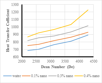 Figure 13. Heat transfer coefficient of the three nanoparticles concentration