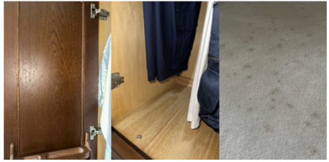 Figure 2. Schematic, dimensions and measuring positions (top), and photograph (bottom) of vented built-in closet and standard built-in closet