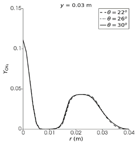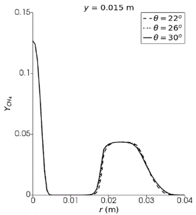 In the present study, the average flow field is axis-symmetric in nature, a wedge shape computational domain has been considered for numerical study. A two-dimensional axis-symmetric, steady-state in-compressible turbulent combustion field is solved using standard κ-ε model [41, 42]. The governing equations for mass, momentum, enthalpy, and concentration of chemical species have been solved using the RANS approach [43] as discussed below.