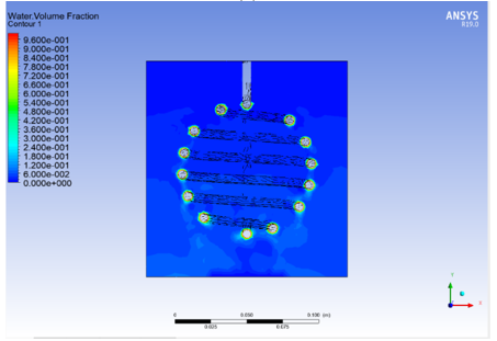 As for Figure 13, which shows the boiling process, it shows that the addition of hybrid nanomaterials increases the generation of the resulting steam. Which accordingly increases the heat exchange process, as the volume fraction in the case WAC0.1 reached 0.407, while in the case WAC0.25, it reached 0.436, while in the case WAC0.4 reached 0.7794, and this indicates the effectiveness of using nanomaterials in thermal discharge.
