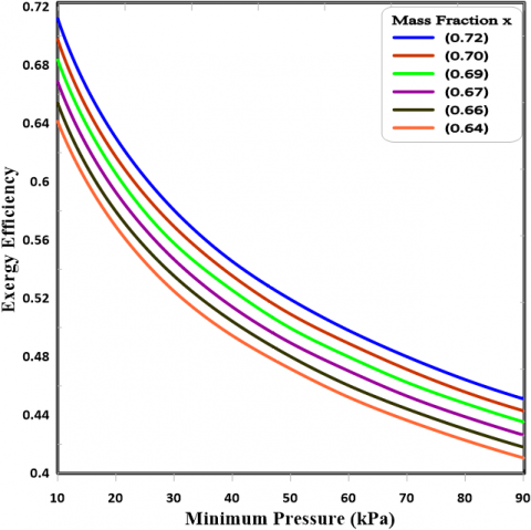 Each component in the model, which is based on Kalina cycle, can be considered a system unit working on equations of energy and mass conservation. The mathematical calculation formulas for each part of Kalina cycle are clear in Table 1. To calculate all the thermodynamic properties of a binary solution (ammonia/water) at each point of the cycle, it is required to know at least the main three parameters, for example, pressure, temperature, and concentration. Additionally, to employ and ease the mathematical software, some hypotheses are made as follows: