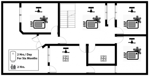Figure 5 presents HVAC and other house systems that will be considered for energy simulation. In Iraq, the HVAC system is not centralized, and only occupied spaces are cooled. Kitchens and bathrooms are not provided with AC units.