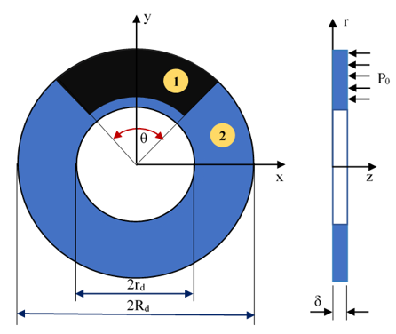 With the above assumptions, the equation governing the temperature distribution of the brake rotor in the transient regime are described in cylindrical coordinates. Using the finite element method, the temperature field is solved according to the following equation: