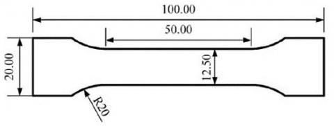 To analyze the joints' microscopic surface features, a Zeiss Imager M2m optical microscope was used and the finer features were studied using a FEI Quanta 250 SEM. A SEM was linked to an energy dispersive spectroscopy (EDS) to look into the chemical composition of the weld zones. A cross-section from the welding joint was hardness-tested with a Vickers Hardness Machine HVD-1500AT under ASTM E384-11e1 rules. Testing for tensile mechanical properties of welded joints followed ASTM E8/E8m-15a using a servo hydraulic universal system with a load cell of 600 kN to 1500 kN. Figure 1 shows the dimensions for the tensile test samples used in the experiment.