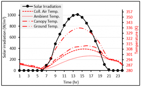 where, IT is the radiation incident on the tilted surface (canopy) and (τα)avgis the average transmissivity of the canopy material, multiplied by the absorptivity of ground material.