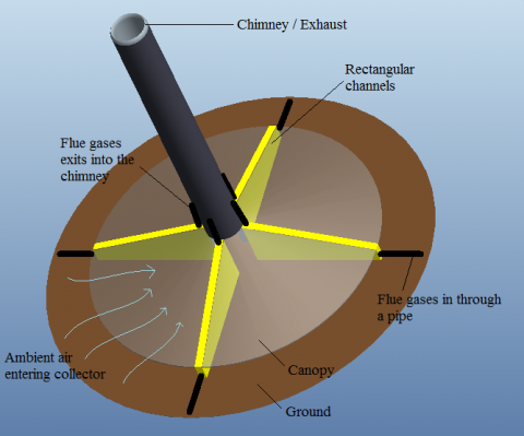 energy recovery, energy sustainability, flue gas, hybrid solar chimney, integrated energy system, integrated solar collector, waste heat