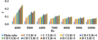 where, Nu and f are Nusselt number and friction factor for the tube equipped with coil inserts, while Nuo and fo represent the corresponding values for the plain tube.