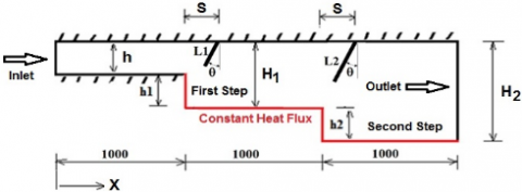 heat transfer enhancement, multi-step, sudden expansion, inclined baffles, fluid flow, CFD