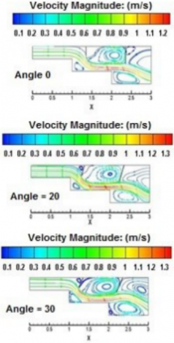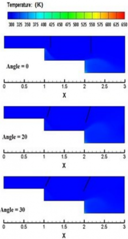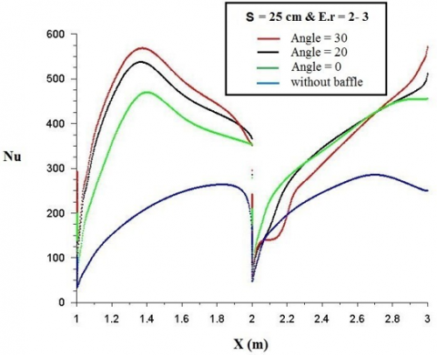 3. Increasing the baffle angle to 30° creates a region between baffles and corners as a jet that increases the air velocity and enhances the heat transfer.