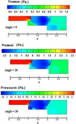 The effect of baffle angle (⍬) with values of 0°, 20°, and 30° was examined. The two-dimensional model of double-stepped SE duct geometry was arranged using the Gambit software.
