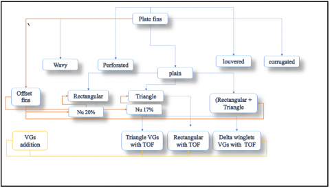 Figure 1. Classification of plate fins and rationale for selecting OTF based on previous work [10]
