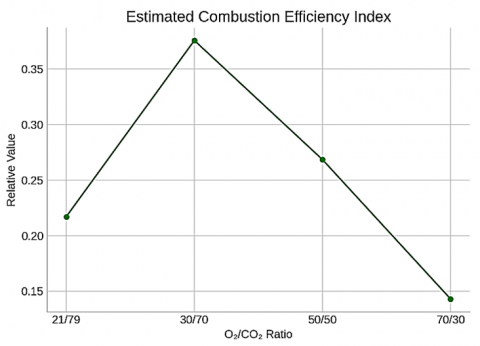 Figure 10. Estimated combustion efficiency index vs O₂/CO₂ ratio