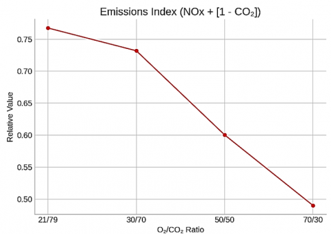 Figure 11. Emissions index vs O₂/CO₂ ratio