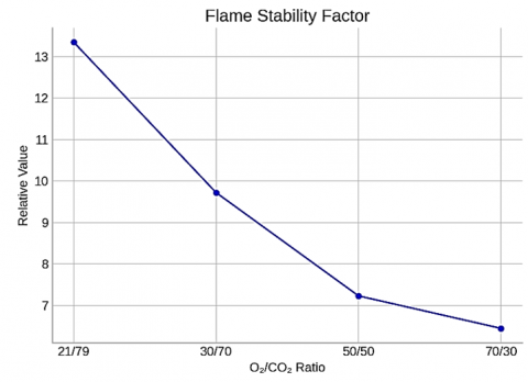 Figure 12. Flame stability factor vs O₂/CO₂ ratio