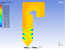 where, $G_k$ is the generation of turbulence kinetic energy due to mean velocity gradients. Chemical reaction modeling is based on finite-rate or eddy-dissipation models, depending on the combustion regime and available kinetics. Radiative heat transfer, often significant in cory-fuel flames, is accounted for using models such as the P1 radiation model or Discrete Ordinates (DO) method when necessary. These governing equations form the basis of the CFD solver and are discretized using finite volume methods to simulate flow fields, temperature distributions, species mixing, and flame dynamics in the combustion chamber under different $\mathrm{O}_2 / \mathrm{CO}_2$ ratios.