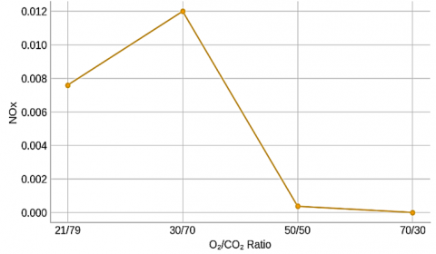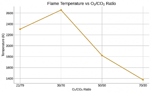 Figure 3. Temperature (K) vs O₂/CO₂ ratio