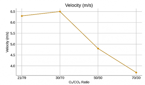 Figure 4. Velocity (m/s) vs O₂/CO₂ ratio