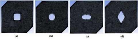 Figure 2. Mesh generation of the model for various configurations: (a) Square, (b) Circular, (c) Ellipse, and (d) Rhombus