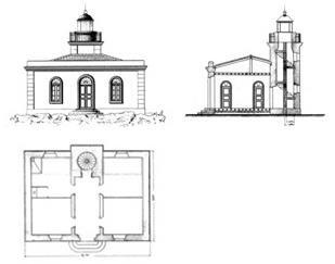 From a constructive-architectural viewpoint, the lighthouse of Santa Clara Island is quite similar to other Spanish lighthouses of Typology B-2 (Figure 1). In particular, both in terms of its shape and its interior distribution, it is very similar to the lighthouses of Suances (Figure 9) and San Vicente de la Barquera (Figure 10), which are located in the nearby province of Cantabria. The lighthouse of Suances was planned on one single floor, with a hipped roof and a rectangular ground plan of 12.00 x 8.50 m2. It had a similar structure to that of the lighthouse of Santa Clara Island, although in this case the interior stone wall was built parallel to the main facade.