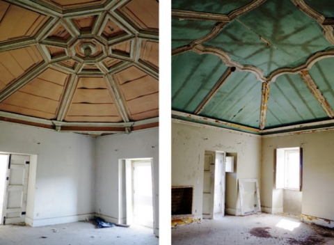 The splendor of the baroque palace was seriously disturbed on 1873, when “a dreadful fire broke out in this house, only the family in the house was saved” [18]. The disaster caused an enormous economic prejudice, so the reconstruction works could only be undertaken thanks to the generous donations from relatives. However, the funds were not enough to make the chapel's altarpiece or the sumptuous carved chestnut wood ceilings (as was customary in noble houses in northern Portugal).