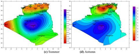 For the studied sites, the altitude above the sea level changes between 9 m in Skikda and 1378 m in Tamanrasset.
