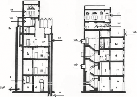 uc: upper court sh: shaft wb: window box (Mashrabiyyah)
