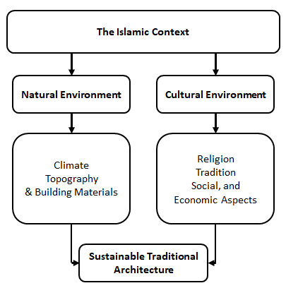 The research included an overview of sustainability from the Islam perspective in the Arab region and selected examples of the traditional houses in the Arab region and Yemeni architecture as a case study, which found that the house design differs from one region to another due to local context, surrounding nature, culture, climate, and local traditions.