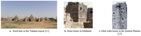Local context influences the Traditional architecture in Yemen surrounding nature, culture, tradition, and climate. The house's design and architecture are different in each region and constructed according to; topography and the local building materials. On the Tehama coast, the houses build material from mud and reeds; on high lands built from stones, mud bricks, and mud walls on the eastern plateau (Table 1). The house's spatial organization and design provide privacy for residents and the architectural elements; windows, Qamariya, and Mashrabiyah provide natural lighting, ventilation, and privacy.
