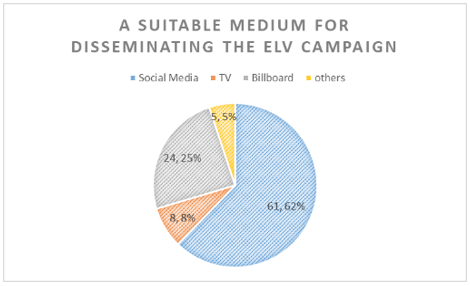 The fourth component of the questionnaire focuses on an ELV awareness campaign. The Likert scale was used in this section. The greatest percentage indicates that respondents strongly disagree that they have ever seen a campaign advocating for the eradication of outdated cars. The campaign comes next. The majority of respondents feel that the campaign is vital for informing people about ELV and that Indonesia should have more ELV campaigns. When it comes to ELV exposure, the majority of respondents feel that it should begin in secondary school. Finally, the majority of respondents chose social media as the most appropriate vehicle for spreading the ELV campaign. Figures 6 and 7 show the results for the fourth section.