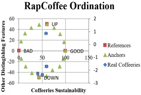 The Multidimensional Scaling (MDS) method is used by the Center for Fisheries at the University of British Columbia, while Rapfish is an extension of the MDS for rapid assessment of fisheries, which is designed to be purposeful, transparent, and is one of the multi-disciplinary evaluation techniques, without replacing stock assessments. conventional in setting specific goals [23] Sustainability can be analyzed through several perspectives, one of the techniques that can be used is the Rapid Appraisal technique, which was previously used in fisheries analysis so it is called the Rapfish analysis technique [24, 25] while the sustainable status can be divided into: (1) discontinuous status with index values range from 0-20; (2) barely growing with an index between 21-40; (3) moderate with an index between 41-60; (4) almost continuous with index 61-80; and (5) sustainable with an index of 81-100 [26, 27] and currently, many studies are using this technique in various sectors. RapCoffee is implemented using the R software, while the RapCoffee stages in the R system are carried out by identifying sustainability issues, determining sustainability dimensions and indicators, then entering data in excel format and then the data that has been entered into the R software is processed to produce a sustainability index output [27]. The steps taken to implement MDS are as follows: (a) Determination of aspects and indicators is carried out by way of discussion and assessment with experts. Scores are given on an ordinal scale ranging from 1 (low) to 5 (high) according to the character of the indicator being measured; (b) Coordination to increase attribute factors based on Root Mean Square (RMS) on the X and Y axes, to determine the ordinate based on Euclidean distance (d), which is formulated: