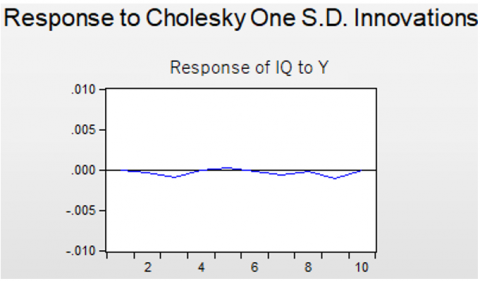 Tracing the effect of shock experienced by a variable on the value of all variables at this time and in several future periods is called the Impulse Response Function (IRF) technique. The shock given is usually one standard deviation of the variable. Basically, Impulse Response describes the path where a variable will return to its balance after experiencing a shock from another variable.