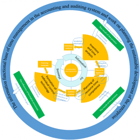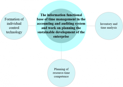However, the high level of informatization and sustainable innovative development have created new challenges that can serve as both additional opportunities and obstacles to the effective functioning and sustainable development of an enterprise. This requires several different approaches to the organization of sustainable development planning, including the definition and classification of organizational structures and methods and models of their formation. The scientific task is to form a model of the information functional base of time management in the accounting and auditing system and work on planning the sustainable development of the enterprise.