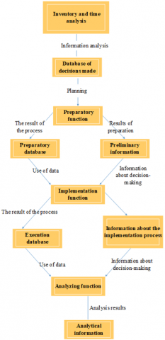The enterprise is currently facing several issues related to the information support system, accounting and auditing, and time management. To address these problems, we have established three key processes that will contribute to achieving our modeling goal, which is to create an "Information Functional Base for Time Management in the Accounting and Auditing System and Work on Planning the Sustainable Development of the Enterprise" (Figure 1).