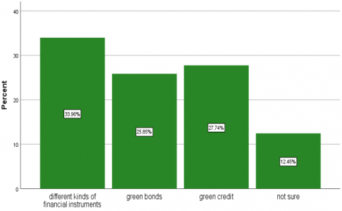 Regarding green financing strategies, the majority of respondents thought there were several different types, and a tiny percentage said they were just unsure. Recent years, the instruments of green financing have seen a sharp rise; as an example, bank industry has introduced low-carbon credit cards and green bonds.